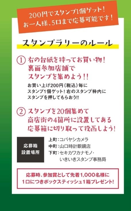 スタンプをあつめると抽選でお買物券が当たるチャンス!!